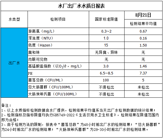 水廠出廠水水質日報表(2025-8-21)