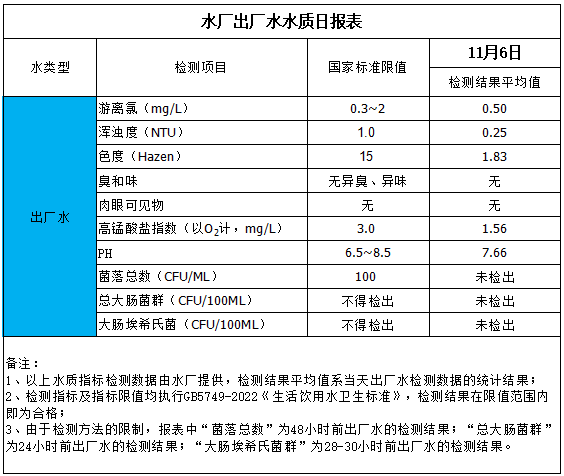 水廠出廠水水質(zhì)日報表(2025-11-6)