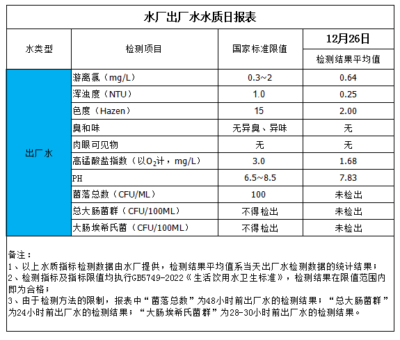 出廠水水質(zhì)日報表(2025-12-26)