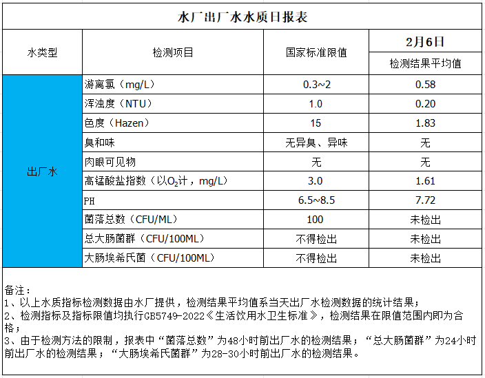 出廠水水質日報表(2026-2-6)