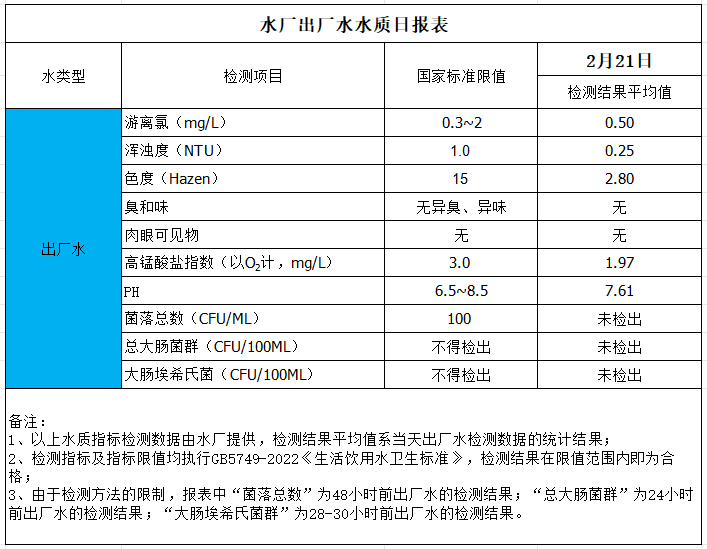 出廠水水質日報表(2026-2-21)