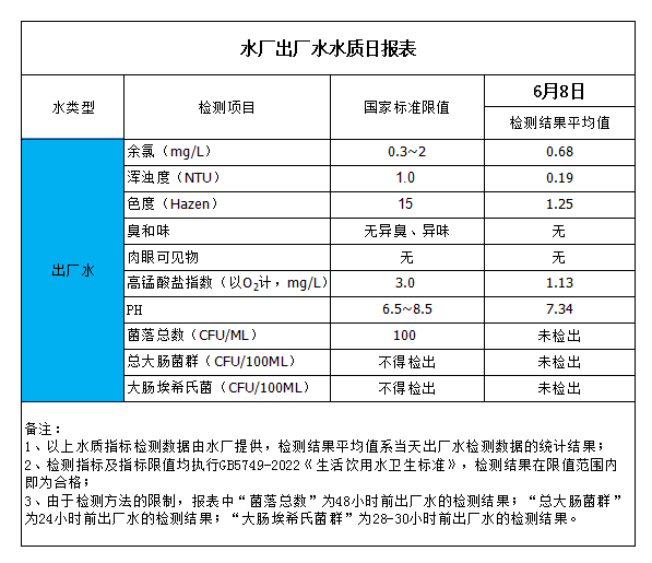 水廠出廠水水質(zhì)日?qǐng)?bào)表(2023-6-8)