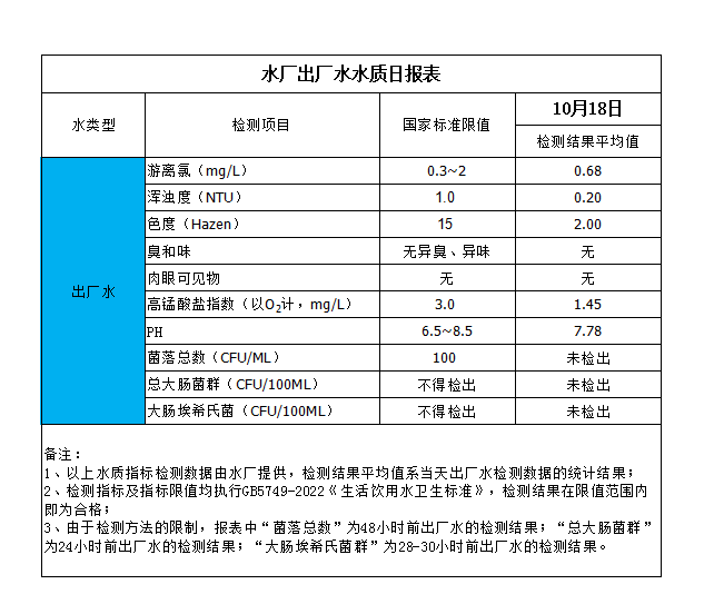 水廠出廠水水質日報表(2023-10-18)
