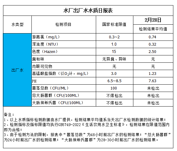 水廠出廠水水質(zhì)日報表(2024-2-28)