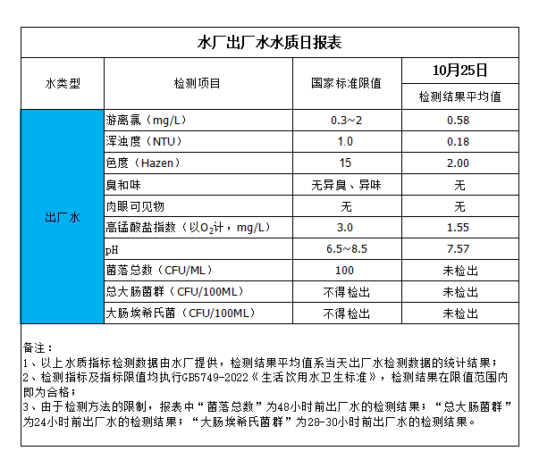 水廠出廠水水質(zhì)日報(bào)表(2024-10-25)